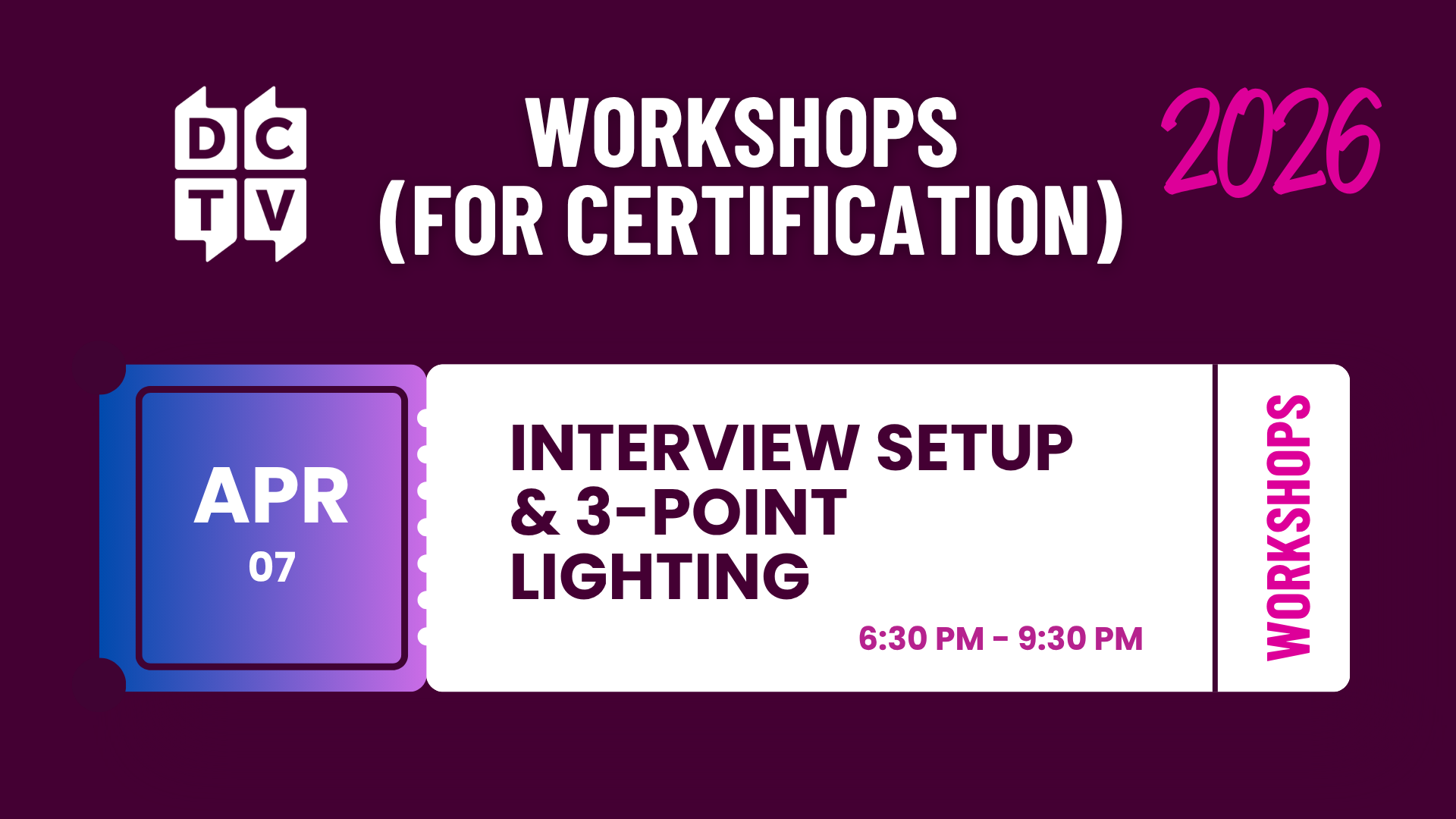 This workshop teaches how to set up a professional interview using 3-point lighting. You’ll work hands-on with Dracast LED lights, basic grip gear, and Sony camcorders as you learn how to position lights, frame subjects, and shape an interview environment. This class focuses on building practical lighting skills you can use immediately.